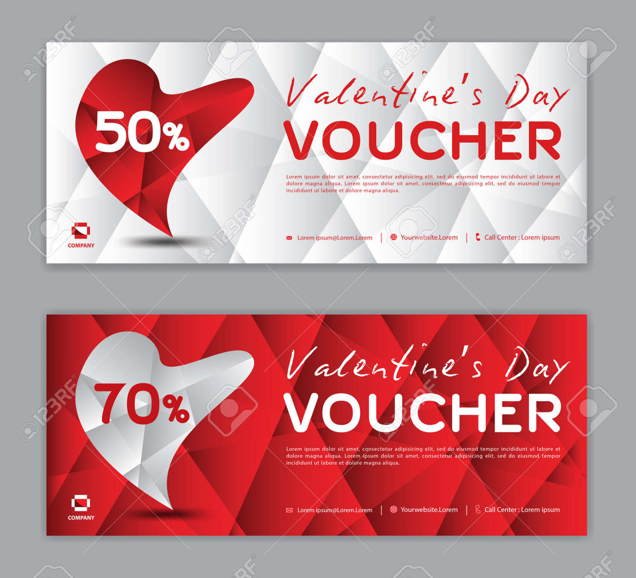 Features of gift voucher template. Horizontal red low poly vector background. A valentine's day coupon book is a sweet way to customize your gift.